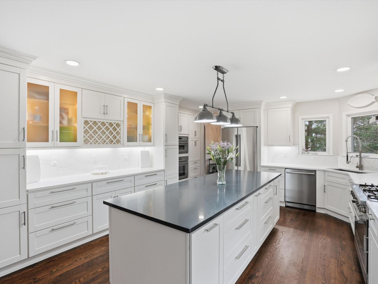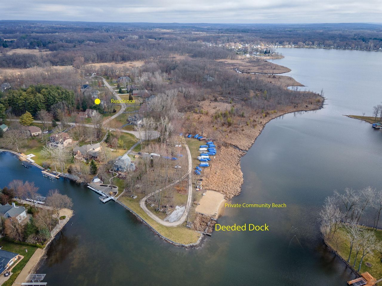 An exceptional offering on the Portage Chain of Lakes, this distinguished Portage Bay Highlands estate includes a private deeded dock on Portage Lake--the largest and deepest lake on the chain. Set on .69 acres, the Victorian-inspired residence known locally as The Castle blends architectural character with a fully reimagined interior. Completed in 2025, the renovation brings a refined, cohesive feel to the home. The kitchen is both striking and functional, anchored by a massive quartz island and equipped with a six-burner Bosch range, in-wall Thermador steam & speed ovens, Thermador dual-compressor refrigerator, and Bosch smart dishwasher. It flows seamlessly into a sunken family room offering a more intimate setting centered around a stone-surround gas fireplace. A two-story foyer and sweeping curved staircase introduce the home with presence and scale. Dark-stained hardwood floors run throughout the main level, complemented by a private office with French doors, an updated powder room, and a main level laundry. Formal living and dining spaces are defined by a distinctive turret-style ceiling--an architectural detail that gives the home its signature identity. Upstairs, four spacious bedrooms offer flexibility for both everyday living and guests. The primary suite is set apart as a private retreat, complete with a sitting area, generous walk-in closet, and a new spa-inspired bath with soaking tub, glass-enclosed shower, and dual vanities. The walkout lower level extends the living experience with a large recreation space, wet bar, full bath, and a non-conforming fifth bedroom or office, along with dedicated workshop space and substantial storage. A five-car attached garage accommodates vehicles, recreational equipment, or boat storage with ease. Outdoors, a wraparound porch and rear Trex deck overlook a quiet, private yard, while Dock #13--just a short walk or golf cart ride away provides direct and private access to the lake. Offering approximately 4,685 square feet of finished living space, this is a rare opportunity to own a home of architectural presence, modern comfort, and true connection to the Portage Chain. Be sure to watch the narrated video tour and see the list of features and updates. Open House Saturday 2-4PM.