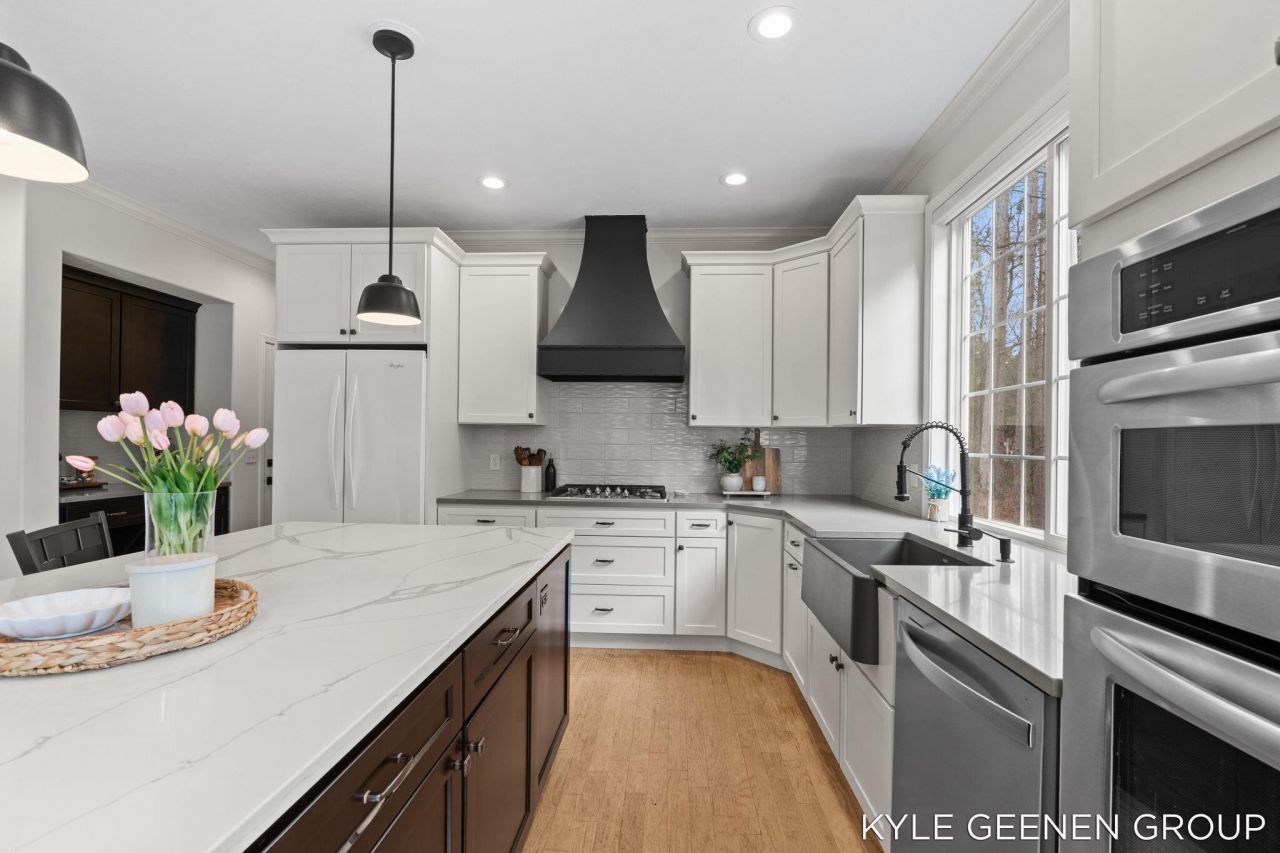Welcome to 14717 Foxboro Lane in Holland, MI, where quality craftsmanship, character, and meticulous attention to detail come together on a beautifully wooded half acre cul de sac lot. This stunning Timberline Acres custom built home offers just over 3000 square feet of thoughtfully designed living space with five spacious bedrooms and four full bathrooms.From the moment you step inside, you will appreciate the smart open concept layout that blends comfort and elegance. The show stopping custom kitchen has been completely renovated and is truly the heart of the home. Featuring hand crafted cabinetry, sleek quartz countertops, a breathtaking center island with snack bar seating, a new cooktop with custom hood, and a built in bar area, this kitchen is designed to impress and built to entertain.The finished lower level adds additional flexibility and comfort, complete with a full bathroom that includes a steam shower, creating a relaxing retreat within the home. The main living areas are bright and inviting, enhanced by fresh interior paint, updated window blinds, and brand new carpets throughout, giving the home a fresh, move in ready feel. Every detail has been carefully considered to create a warm yet modern atmosphere.Step outside to enjoy the peaceful, wooded backyard from the updated deck with new railing, plus convenient new stairs leading down to the lower level patio, perfect for gatherings, relaxing evenings, or enjoying nature in your own private setting.With high end updates already completed, this home offers incredible value compared with new construction while delivering the style, space, and finishes todays buyers desire. Do not miss the opportunity to own this exceptional property in one of Hollands most desirable settings.