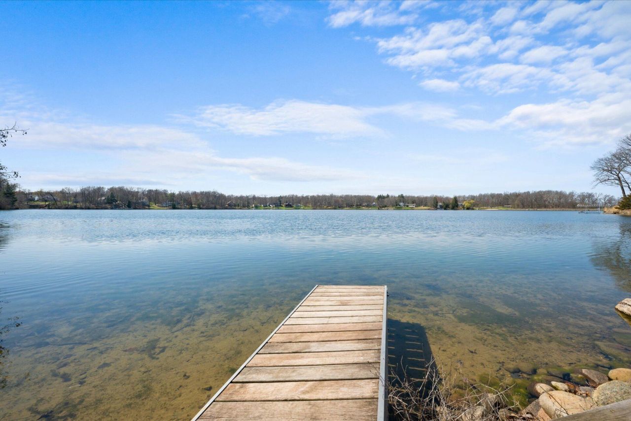 Completely rebuilt in 2019, this stunning lakefront home blends rustic charm with upscale modern design. Set among mature trees, boasting incredible sunsets, the 108 ft of frontage on Mirror Lake provides you Northern MI tranquility but without the long drive. Striking upper-level addition creates 17ft ceilings in the living room and adds flexible sleeping space, ideal for multi-generational living. Thoughtfully designed main floor has many ADA features, including a beautiful primary ensuite. High-end construction includes Pella windows/sliders, two energy-efficient Rinnai recirculating systems. The lower level eat-in kitchen and family room preserve the classic walk-out lake house feel, perfect for summer entertaining, while offering potential for a second kitchen upstairs. Minimal HOA fee with access to private beach park, new boat launch, and ongoing improvements. Mirror Lakes jet-ski/wake boat restriction protects its natural beauty while still allowing plenty of all-sports fun!