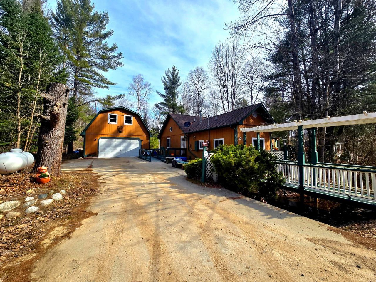 PRICE IMPROVEMENT & $5,000 FLOORING ALLOWANCE TO BUYER!Originally built as a cozy cabin and beautifully renovated in 1992, this home showcases floor-to-ceiling tongue & groove knotty pine, creating the warm Up North feel youve been looking for! A remodeled bath with a large walk-in shower adds comfort and convenience. The 1999 addition expands the living space with 14-foot vaulted ceilings, abundant natural light, and 3 spacious bedrooms with 2 additional full bathrooms, including a private primary en suite with jetted soaking tub. Thoughtfully designed barrier-free features include extra-wide hallways, an entry ramp, and bathroom safety bars--ideal for accessibility, aging in place, or multi-generational living. Step outside and enjoy pure Northern Michigan serenity. Relax on two decks with pergolas, cross two charming bridges over a private stream, and take advantage of two quality storage sheds for tools, ATVs, or outdoor equipment. Car enthusiasts, hobbyists, and outdoor lovers will appreciate the incredible outbuildings: A main detached garage with 10 ceilings, electric, plumbing for a future bathroom, and generous upper storage. A second detached heated garage with two 12 overhead doors, insulated, 220 electrical service, floor-to-ceiling wood shelving, and gated entry, easily convertible into a workshop, guest quarters, or additional living space. Situated on 1.47 wooded acres with hundreds of acres of nearby state land, this property offers unmatched access to hunting, ORV trails, snowmobiling, hiking, and year-round recreation. Wildlife sightings are common: deer, turkey, fox, bear, and even a bald eagles nest visible from the backyard.If youre searching for a Northern Michigan cabin, wooded acreage, pole barn property, multi-generational home, or recreational retreat near state land, this one checks every box. Welcome home to Northern Michigan!