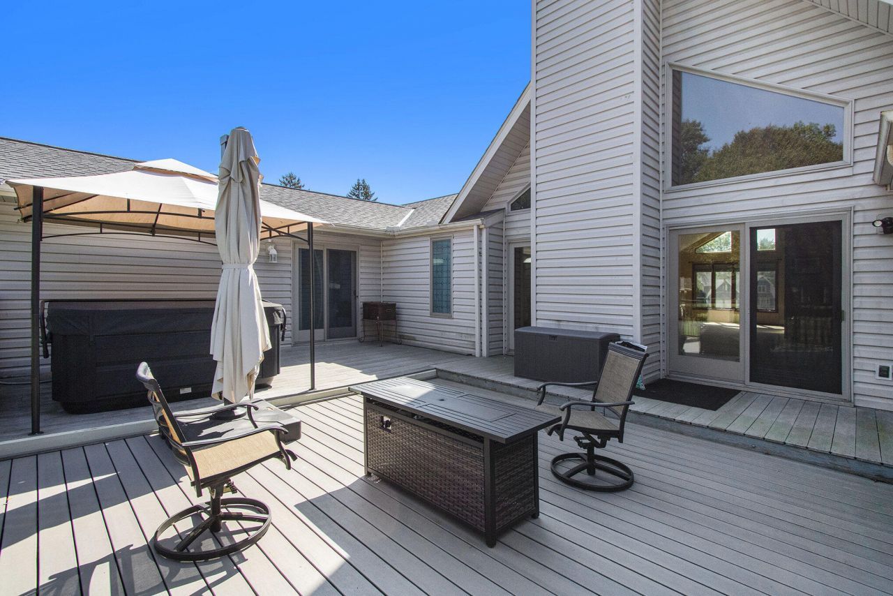 Oh the views of Paw Paw Lake! This gem of a house was built across the street from the lake by Dale Christie in 1993. Enjoy use of the lake via public access. This 5 bed, 3.5 bath, large home was built with the best materials and finishes. Inside you will find real wood flooring, porcelain tile from Italy surrounding the inlaid carpeting, oak cabinetry with quartz countertops in the kitchen, Stainless appliances, cedar lined closets, marble tiled primary bathroom, jacuzzi tub and double sinks. No corners were cut here. The house is heated with high efficiency geothermal closed loop system, has underground sprinkler system, Kinetico water softener system, and AIM whole house water filtration system. The basement has walk-out ability with the majority of the space finished, including a full bathroom. The back side of the house offers an upper deck with hotter, lower patio, two sheds & a lovely private woods & setting to enjoy.