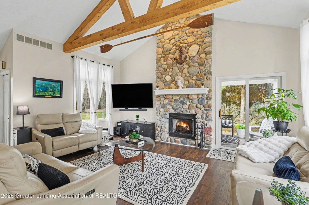 8573 W Lakeshore Dr... is a SHORE thing, where every day ends with a better view! Live your best life on the water at Scenic Lake in Laingsburg, one of Greater Lansings few highly sought-after all-sports lakes. Enjoy year-round lake living across approximately 150 acres, with a private, tranquil lifestyle for those lucky enough to call it home. Set on 1.7 acres, this property offers the perfect blend of Craftsman charm and modern updates. Step inside the great room, where youll immediately notice vaulted ceilings, exposed beams, and a stunning stone fireplace. The space feels open, warm, and inviting all at once. Natural light fills the room and beautifully frames your view, and your life...on the water. Just outside, the covered pergola is the perfect spot for morning coffee or unwinding at the end of the day while taking in the scenery. Dual electric patio heaters with enclosure extend the enjoyment of this space through much of the year. The kitchen has been thoughtfully updated and truly serves as the hub of the home. Featuring custom cabinetry, a full-height tile backsplash, live-edge wood accents, floating shelves, and stainless-steel appliances, it is both functional and modern, ideal for entertaining yet perfectly suited for everyday living. A refreshed pantry and main-floor laundry lead to the attached 3-car garage. The main floor also offers a flexible office or study that could easily serve as a den, formal dining area, or even a potential fourth bedroom. The center hall between the kitchen and office includes a half bath and access to the partially finished lower level. Upstairs, youll find three spacious bedrooms and two full baths. The primary suite is a standout, offering peaceful lake views and a fully renovated ensuite bath that feels like a private retreat. The oversized tiled shower features a custom concrete base, pebble flooring, a rain head, and body sprays, creating a spa-like experience. Two additional bedrooms are generously sized, each with double closets, and share an updated main hall bath. The lower level includes finished recreation space, perfect for movies and entertainment, with exciting potential to add another bedroom and bath. This level offers flexibility for whatever you need to relax, work out, listen to music, and more. Extensive networking, electrical, water filtration, and smart system upgrades have also been completed here. Thoughtful updates over the past few years have enhanced the homes appeal, including interior finishes, flooring, lighting, electrical, garage improvements, exterior updates, landscaping, and outdoor enhancements, making it truly move-in ready. A detailed list is available. A one-year AHS Shield Plus Home Warranty is also included for the buyer at close. Finding a home on this lake with its private beach, improved shoreline, and stunning sunsets is rare, especially on a semi-private 1.8-acre lot. The pergola and freshly poured concrete patio with a fire pit create a cozy atmosphere, making evenings outside just as enjoyable as days on the water. Lake days and weekends will feel like a permanent vacation...no need to travel north. Just add water, your boat, and enjoy. School Information: Perry Schools. If desired, Laingsburg Schools are within 3 miles. The open School of Choice window is July 2026 for the 2026-2027 school year. Community Lifestyle: In the summer, the lake community comes to life with fireworks, boat parades, and events that bring everyone together. Scenic Lake Property Owners Association priori