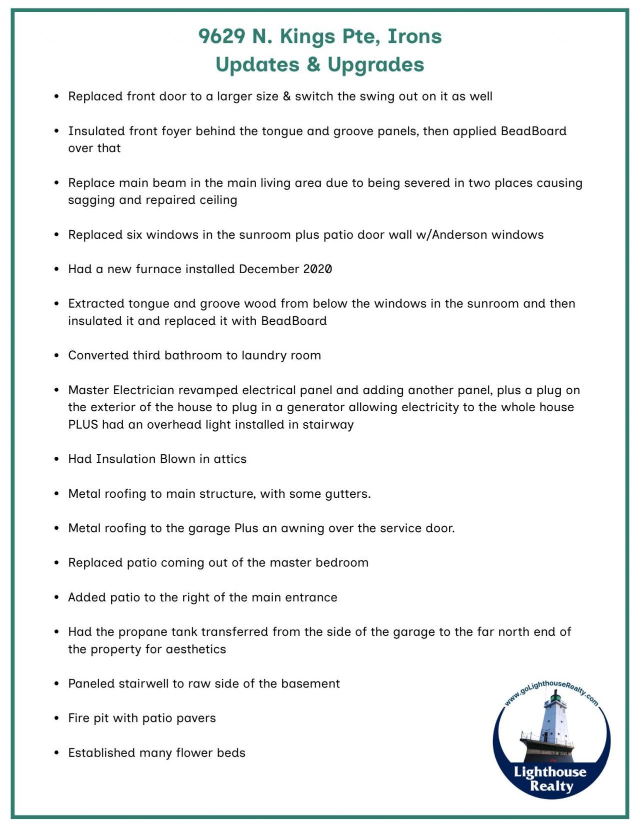 This single family home located at 9629 N Kings Point, Irons, MI 49644 is currently listed for sale with an asking price of $435,000. This property was built in 1940 and has 3 bedrooms and 2 full baths with 2150 sq. ft. N Kings Point is located within the Kaleva-Norman-Dickso school district. Search Irons real estate on www.karlahummrealtor.com today.